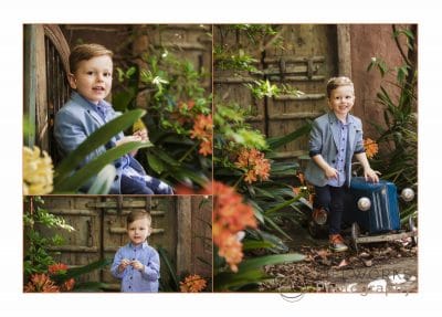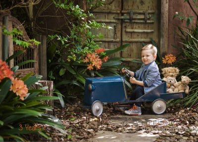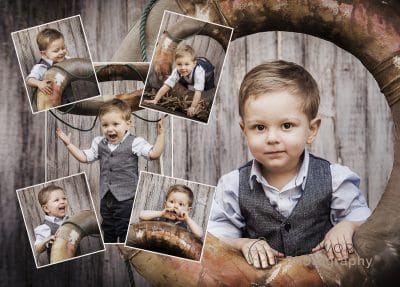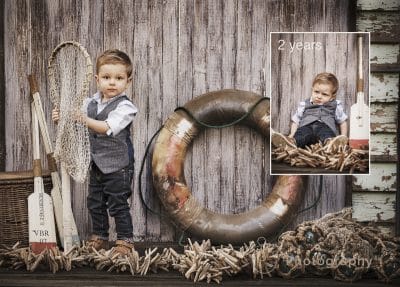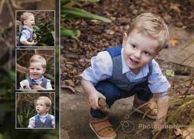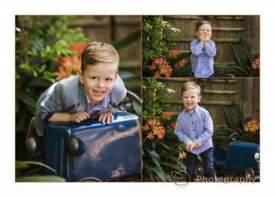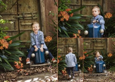 Georgie has grown into a high energy, inquisitive child who just loves to learn. So when planning his session we decided to incorporate a few props that would take his interest and that also suited the style of clothing and location (our outdoor studio) his mum had chosen for this photo shoot.