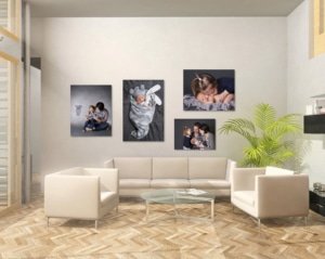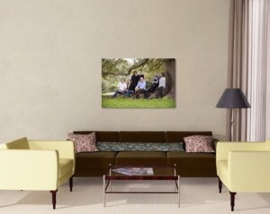 Canvas prints are lightweight, modern and vibrant, and offer an alternative to traditional framing of photographs. Weighing less than framed prints, they can provide a ‘frameless’ presentation which can blend well into any style of decor in a home. The format easily lends itself to ‘collage’ and other arrangements of many photos on the one canvas.